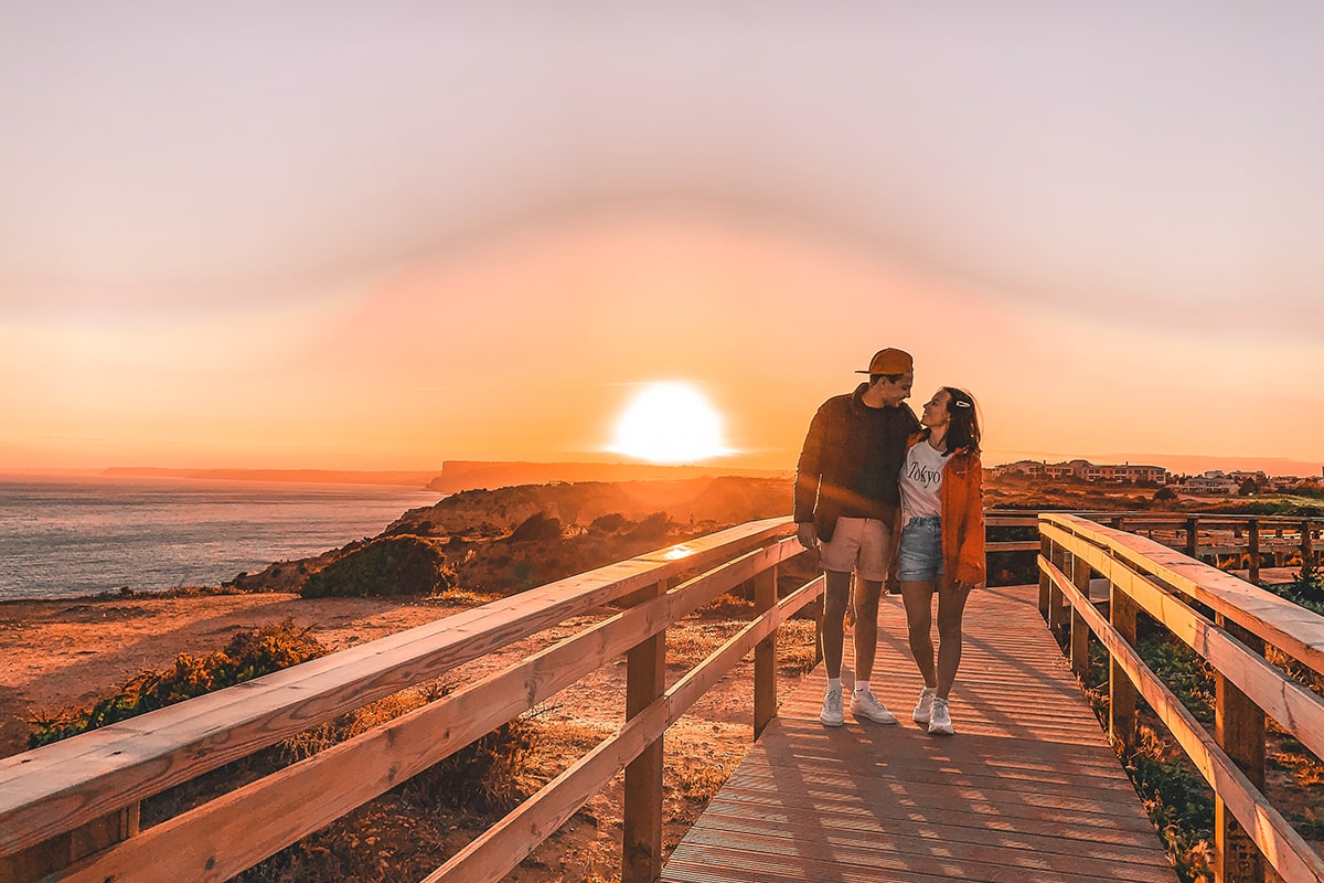 Carvoeiro est un village coup de cœur pour nous en Algarve. Nous avons adoré nous balader autour de la magnifique plage du centre-ville où se mélangent les locaux et les touristes. Il y a un charme naturel qui se dégage de Praia de Carvoeiro mais aussi des alentours avec sa place centrale et quelques points de vue sur les falaises avoisinantes. Nous avons d’ailleurs pris un peu de hauteur pour le coucher de soleil au niveau de « Passadiços do Carvoeiro » qui est une succession de passerelles en bois à flanc de falaise.