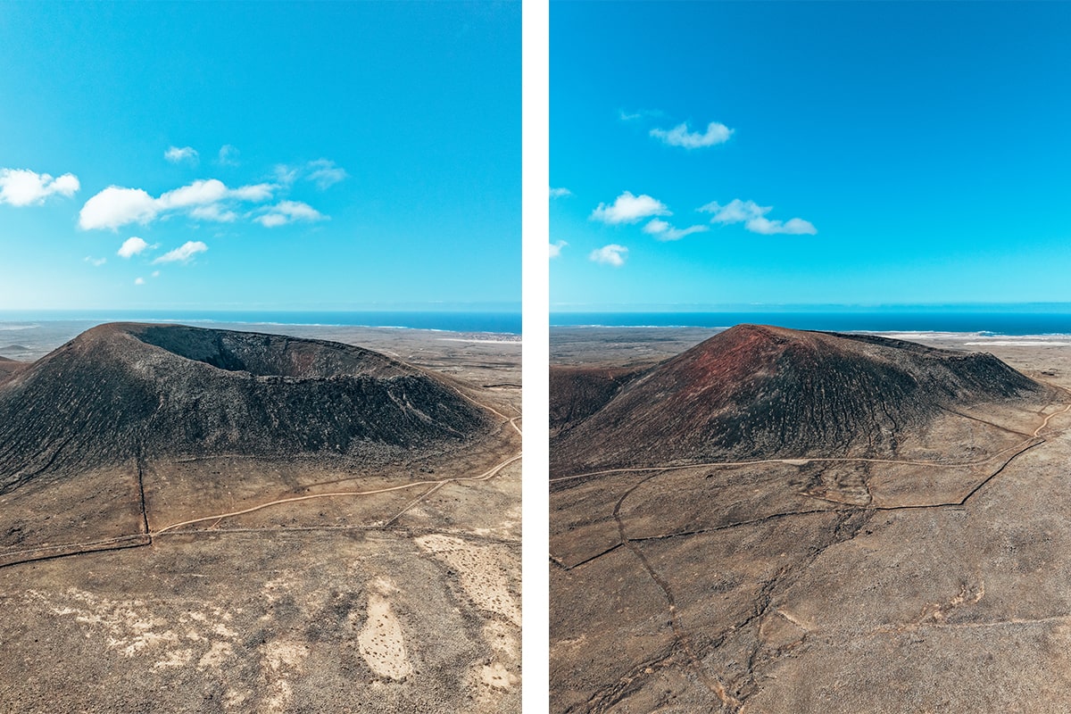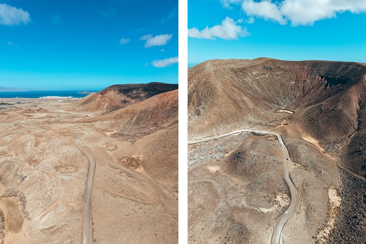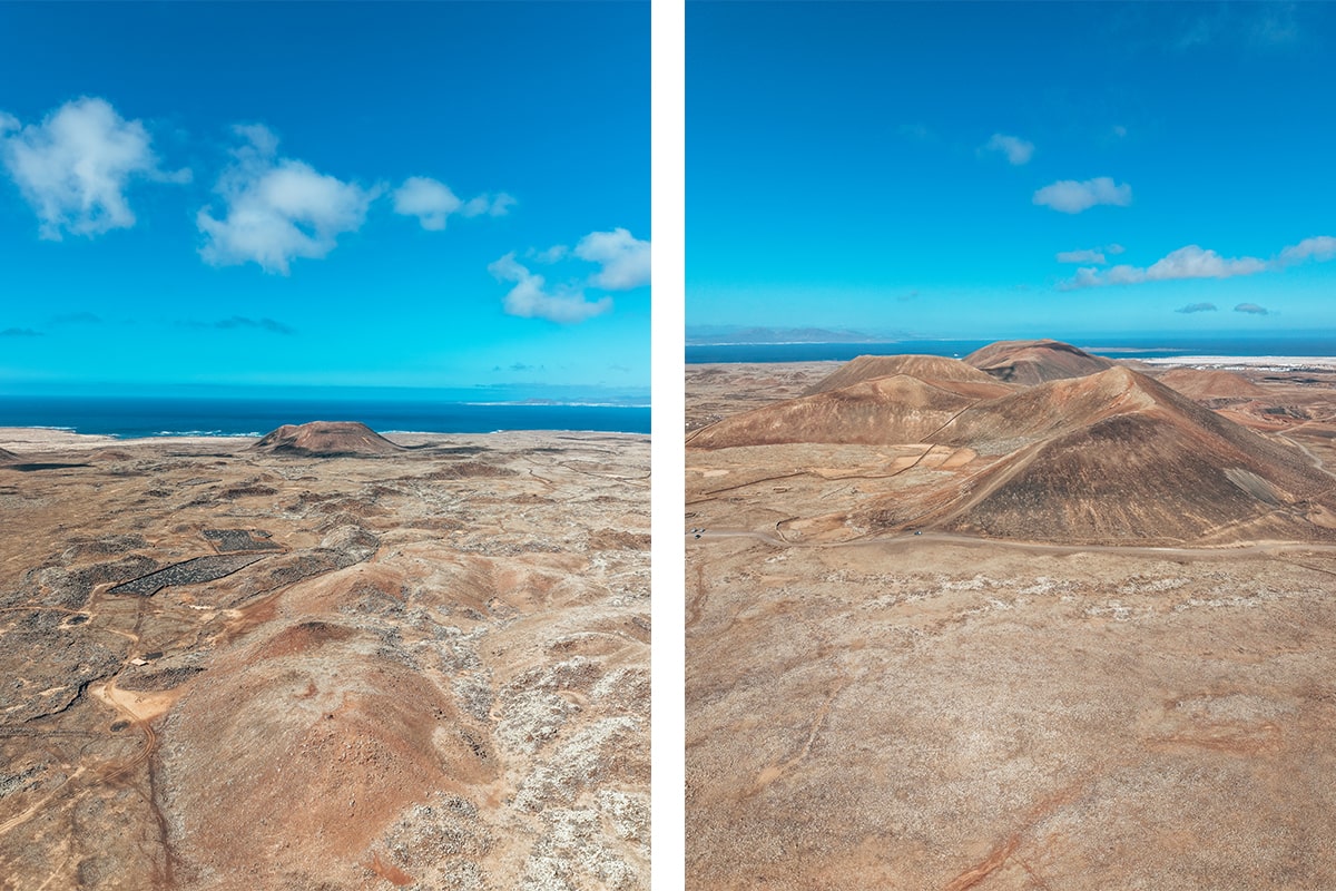 La route des volcans du nord se trouve entre les villages de Corralejo et Lajares. C’est clairement l’un de nos coups de coeur de ce voyage à Fuerteventura. Les volcans les plus connus sont celui de Bayuyo et Calderon Hondo mais ce sont les paysages au global complètement lunaires qui nous auront marqués. Tout au long de la route non goudronnée, on en prend plein les yeux en prenant un peu de hauteur ou en contournant les volcans et montagnes. Les couleurs et les décors désertiques sont à couper le souffle.