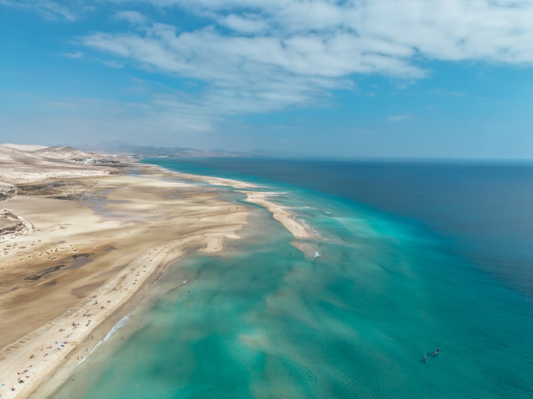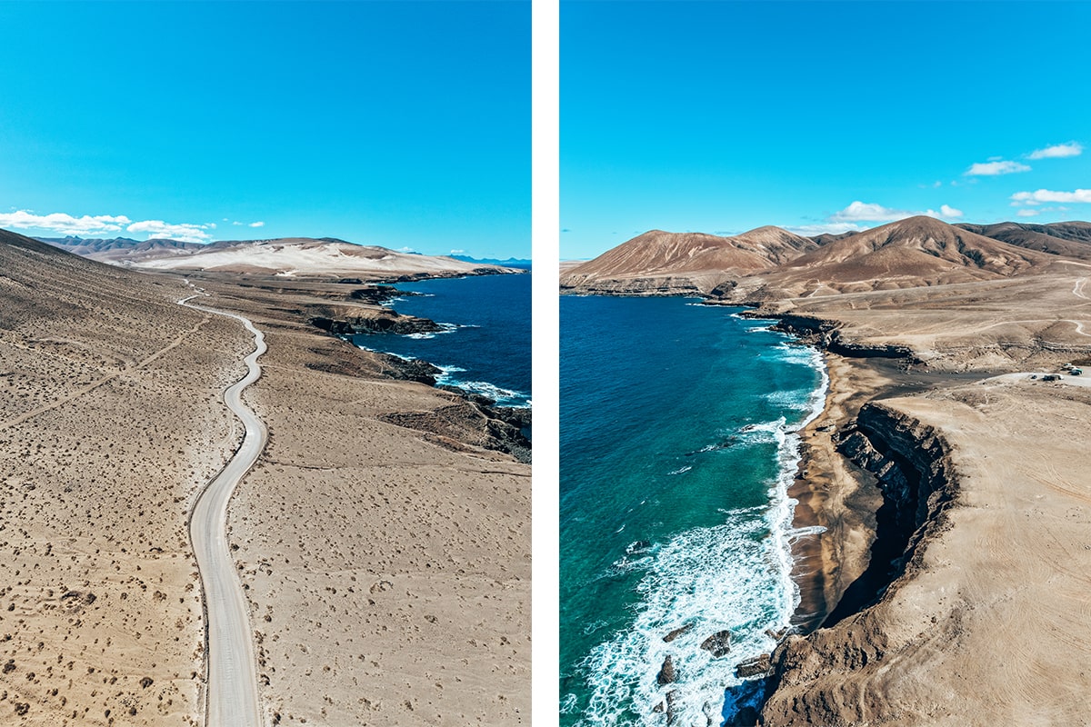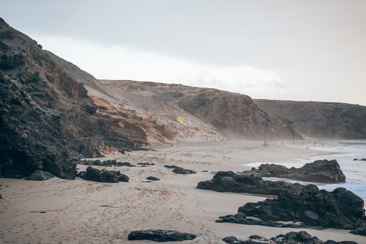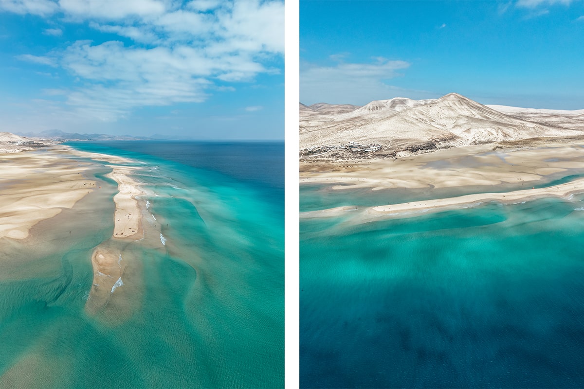 La plage de Sotavento est clairement un incontournable à faire lors d’un voyage à Fuerteventura. Selon les marées, la plage se transforme en une succession de bancs de sable entourés par des eaux turquoises. C’est le lieu idéal pour profiter de la plage et se baigner. Il est aussi très sympa de se balader le long de la côte ou de banc de sable en banc de sable. La plage de Sotavento fait partie des cartes postales de Fuerteventura et c’est un lieu paradisiaque que nous ne pensions pas voir avant de venir sur l’île. Nous vous conseillons de venir découvrir ce spot 2h avant et 2h après la marée basse pour bien voir les bancs de sable. Sachez que la plage reste tout de même magnifique à marée haute.