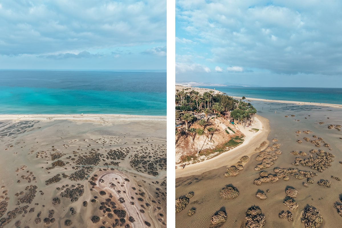 La plage de Sotavento s’étend sur plusieurs kilomètres et nous vous conseillons de la découvrir en entier en marchant sur le bord de plage ou en voiture grâce à une petite route non goudronnée qui rejoint l’hôtel Melia (depuis le parking de la playa Risco Del Paso). C’est d’ailleurs juste à côté de l’hôtel Melia que nous avons découvert une jolie plage avec des palmiers au niveau du Beach Bar Jandia. Elle est parfaite pour se promener et profiter d’une baignade dans la piscine naturelle lorsque l’eau est assez haute.