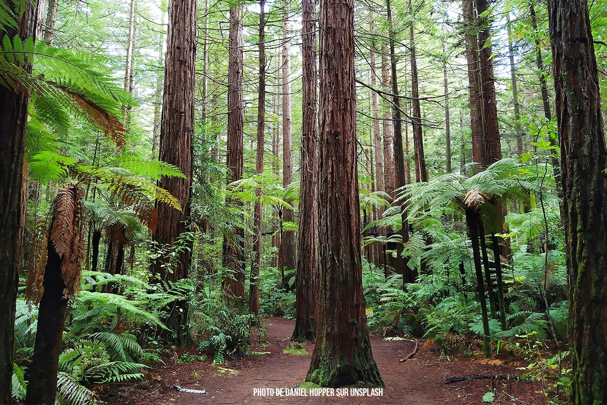 Le foret de Whakarewarewa se trouve non loin de Rotorua et c’est un endroit magnifique pour profiter de la nature et de découvrir les grands séquoias. Vous y trouverez de nombreux sentiers de balade pour apprécier au mieux le lieu. Il existe aussi une expérience insolite qui se nomme Redwood Treewalk qui permet de se promener sur les hauteurs des sequoias avec plusieurs ponts suspendus et de nombreuses plateformes à plus de 20 mètres de hauteur.