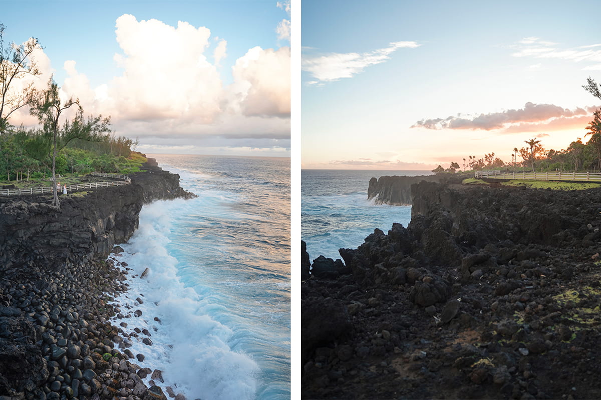 Le Pas de Bellecombe est un balcon au panorama exceptionnel sur le Piton de la Fournaise. C’est vraiment impressionnant de la voir d’aussi près mais surtout de découvrir tout ce paysage autour qui provient de l’activité volcanique d’hier et d’aujourd’hui. Le Pas de Bellecombe est aussi le point de départ pour la randonnée vers le sommet que nous n’avons pas pu faire à cause des éruptions en cours. Nous avons tout de même pris part au sentier qui mène au Pas de Bellecombe qui est une sorte de crête ou falaises qui fait face au Piton de la Fournaise et qui longe sur la gauche. En contrebas, nous pouvons voir le cratère Formica Léo qui donne un cachet au paysage. Lors de notre passage, nous avons eu la chance de voir les panaches de fumée jaillir du cratère du volcan du fait de l’éruption. Une expérience hors du commun et surtout un incontournable à voir et à faire lors de votre voyage à la Réunion.
