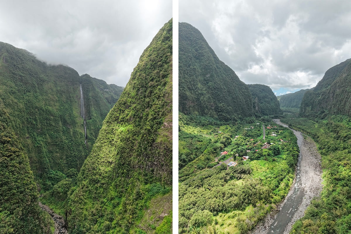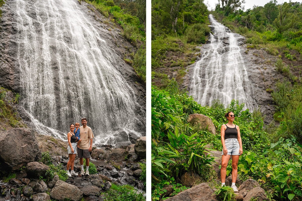La cascade du Voile de la Mariée se situe dans le cirque de Salazie et c’est l’un de nos coups de cœur à la Réunion. Il est possible de s’en approcher de plus près grâce a une petite randonnée. Il faut environ 30 minutes pour arriver en bas de la cascade en passant par une passerelle, un tout petit village et au milieu d’un décor enchanteur. Au pied de la cascade du Voile de la Mariée, il n’y a pas grande place mais il est tout à fait possible de tremper les pieds en faisant attention surtout à ne pas glisser. Le lieu est vraiment magnifique pour se rafraîchir et en prendre plein les yeux au milieu de nulle part.