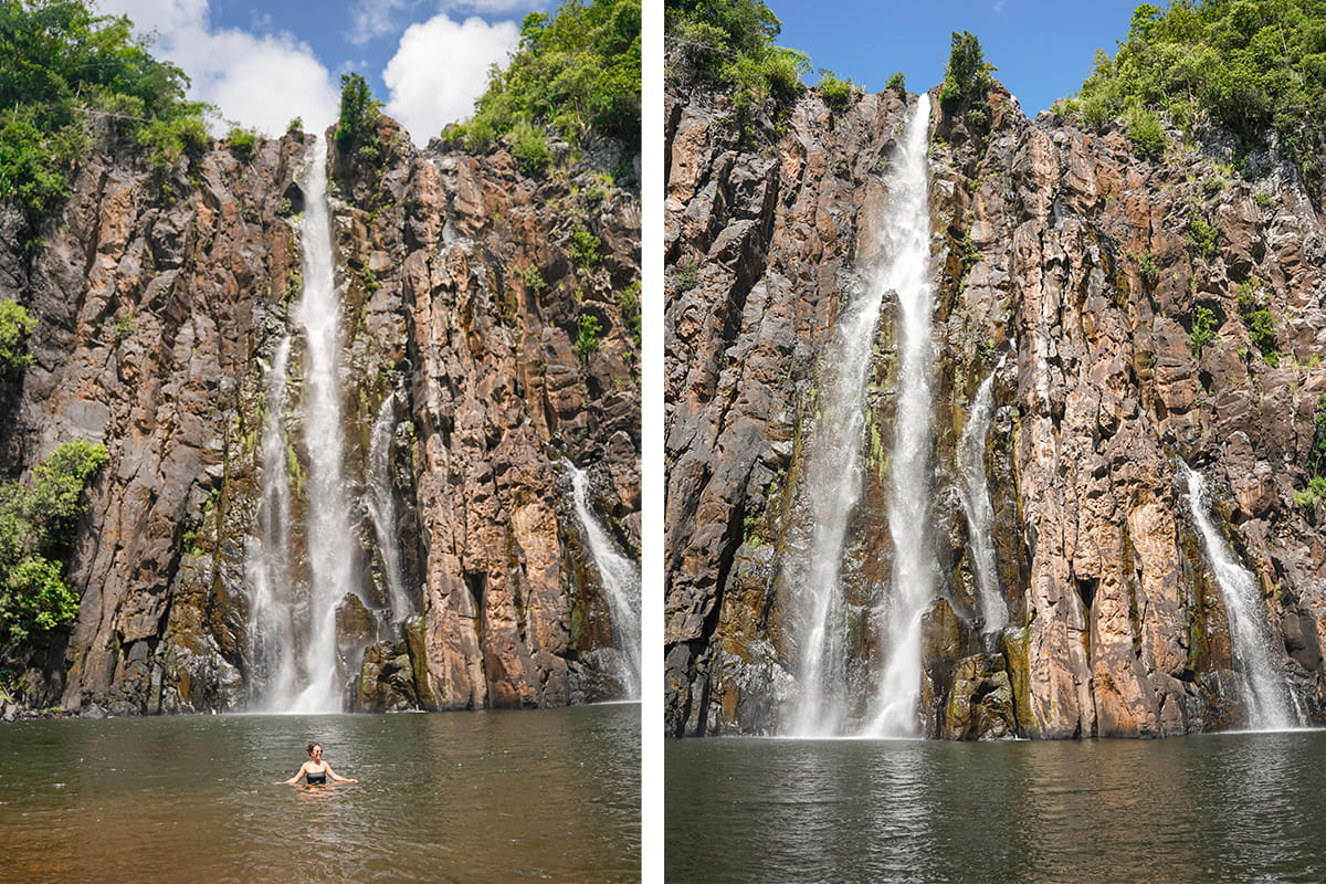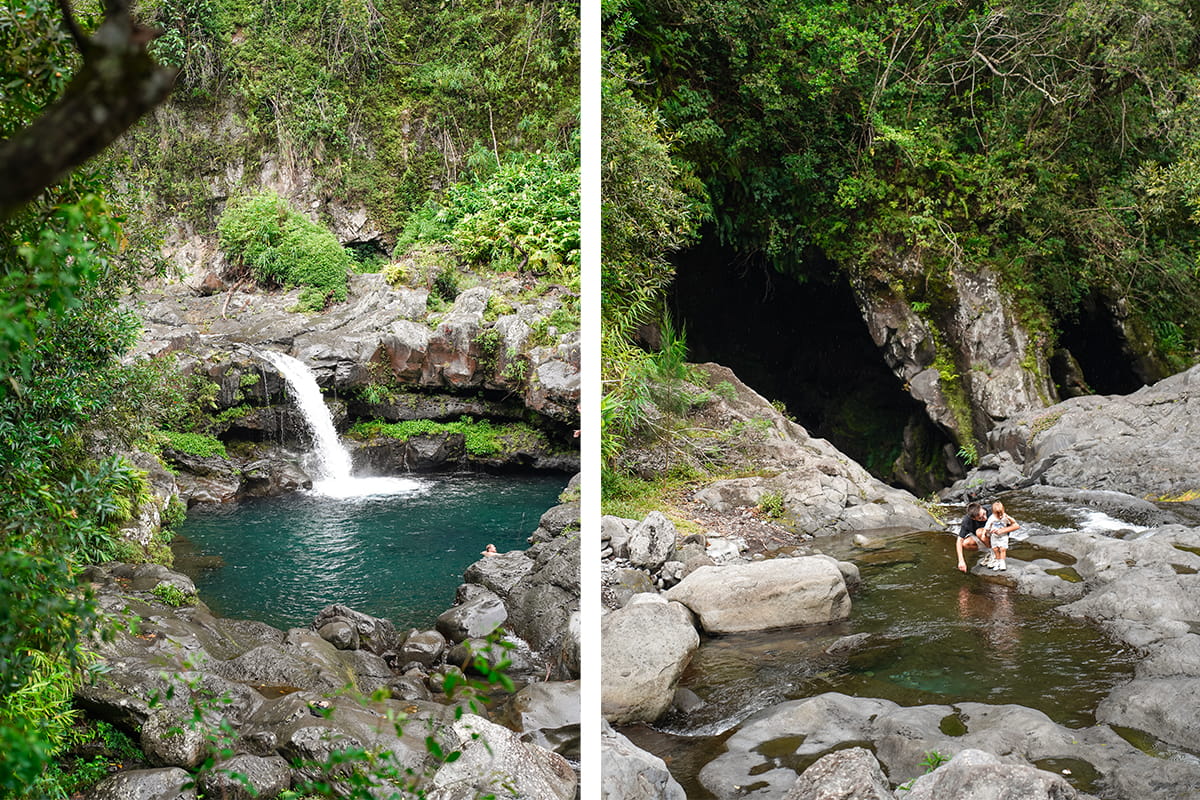 Après le Cirque de Salazie et une partie de la fameuse route des laves, nous prenons aujourd’hui la direction de l’ouest de l’île de la Réunion. Sur la route, nous vous conseillons de ne pas rater la cascade Niagara qui est une petite pépite. Les dernières mètres de la route pour s’y rendre sont un peu étroits mais la récompense vaut le coup avec une magnifique cascade et son bassin en contrebas. L’accès se fait facilement face au petit parking. Nous avons posé nos serviettes ici et nous en avons profité pour nous baigner dans le bassin rafraichissant. Un moment vraiment parfait avec la chaleur de la journée et des paysages toujours aussi magnifiques.