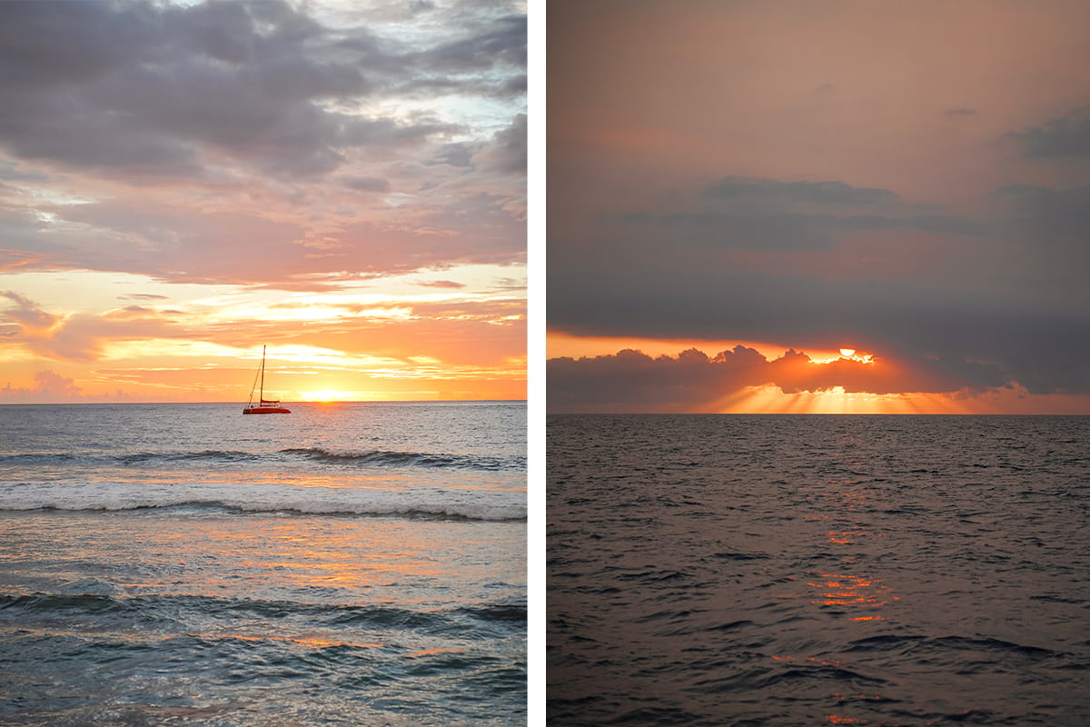 En fin de journée, nous avons pris la direction du nord-ouest de l’île de la Réunion pour prendre un catamaran et profiter du coucher de soleil. Durant deux heures, nous avons sillonné les côtes réunionnaises avant que le soleil se couche. Ce soir-là, les couleurs auront été un peu timides mais l’expérience était cool. Il est possible selon les saisons et la chance de pouvoir croiser des tortues, des dauphins et même des baleines.