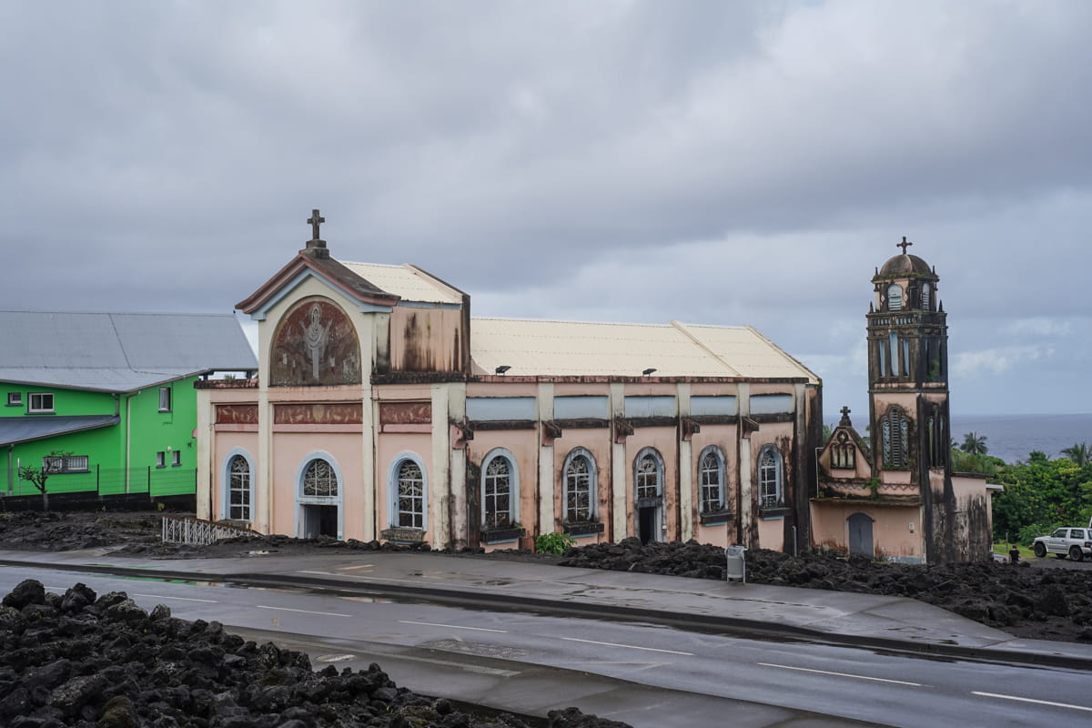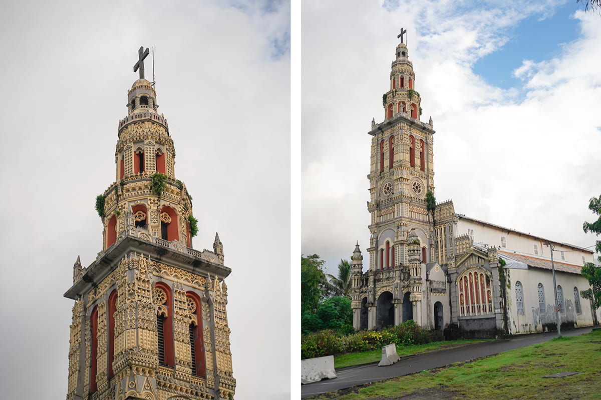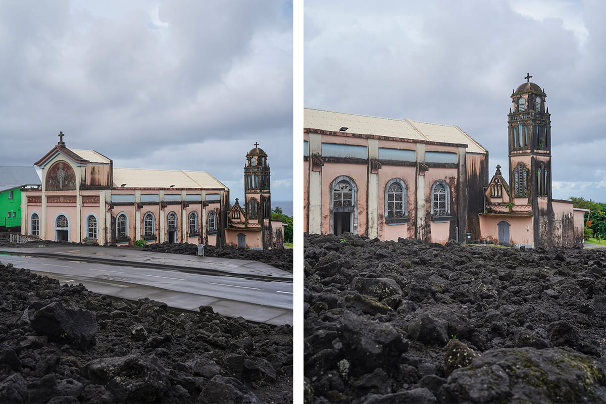 L’église Notre Dame des Laves est une jolie histoire à raconter au delà de sa beauté. En plein coeur du village de Sainte Rose se trouve cet édifice coincé par une ancienne coulée de lave. L’histoire raconte que dans les années 1970, une coulée de lave suite à l’éruption du Piton de la Fournaise s’est dirigée vers le village de Sainte Rose et à tout enseveli sur son passage à l’exception de l’église (la lave s’est arrêtée juste devant). On peut d’ailleurs voir dans une petite exposition à l’intérieur de l’église, des photos montrant la coulée de lave autour de l’édifice mais aussi à l’intérieur. C’est assez fou que l’église soit encore debout surtout que l’on peut voir les traces de la chaleur extrême sur les murs extérieurs. Au delà de ce phénomène, l’église possède un véritable cachet et c’est un arrêt incontournable sur la route N2.