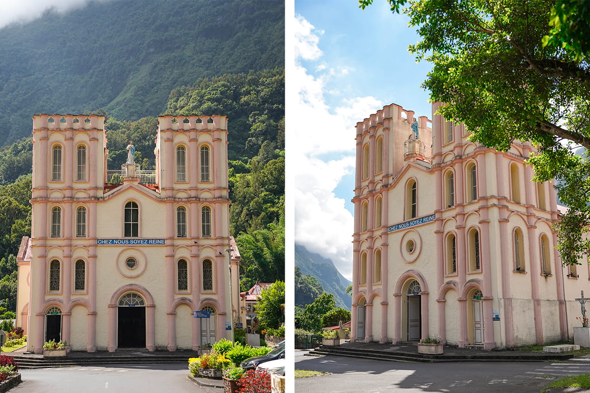 Salazie est un petit village où nous nous sommes arrêtés pour découvrir son église Notre Dame de l’Assomption et son architecture atypique. Le village est la porte d’entrée du cirque du même nom et on peut y trouver toutes les commodités nécessaires. Le pont qui surplombe la rivière à l’entrée du village vaut aussi le coup d’œil pour les points de vue.