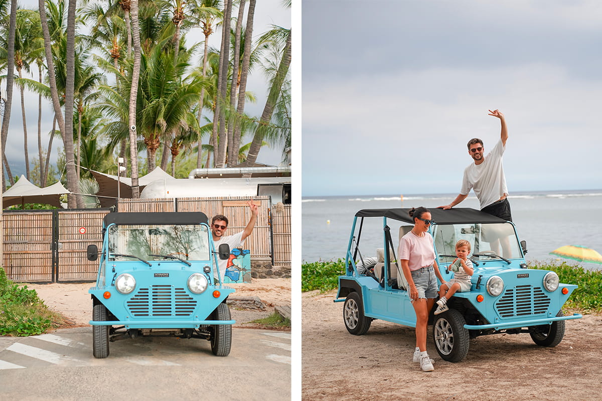 Aujourd’hui, nous partons découvrir de nouveaux spots à l’ouest de l’île de la Réunion mais cette fois-ci dans un véhicule vintage : une Mini Moke. Ce véhicule électrique original va nous permettre de continuer notre exploration de l’île autour du village de Saint Gilles dans une ambiance différente. Avec un bébé, nous avons préféré seulement visiter les plages aux alentours et tester ce mode de déplacement aux alentours de Saint Gilles.
