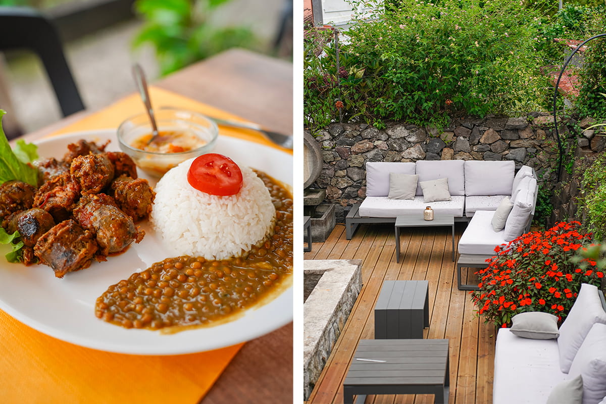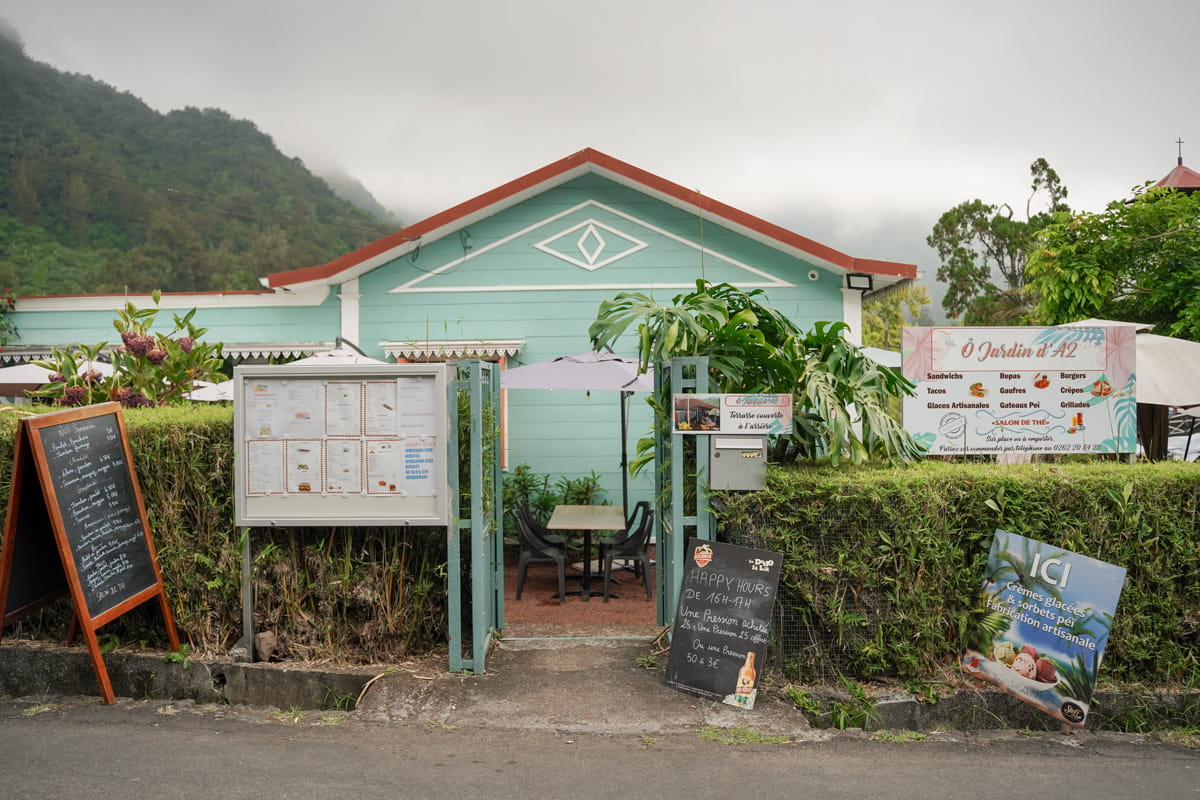 Le petit restaurant O Jardin d’A2 se trouve dans le village de Hell Bourg et c’est un lieu parfait pour boire un verre ou manger. Nous avons déjeuné ici et cela nous a permis de déguster des plats typiques réunionnais. On s’est régalé pour notre plus grand plaisir. Le restaurant est dans le thème des cases créoles avec de jolies couleurs et une bonne ambiance. Si vous voulez faire une pause dans le cirque de Salazie ou à Hell Bourg, c’est une bonne adresse.