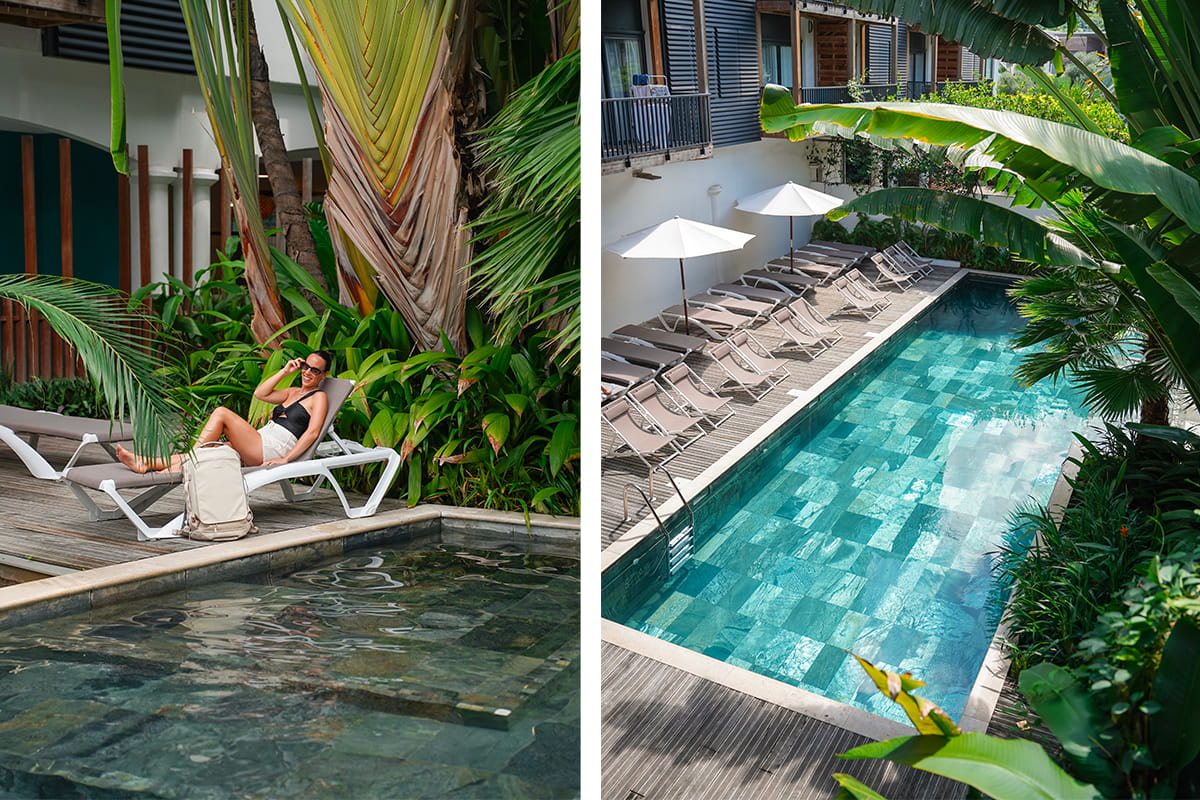 Toujours à Saint Leu, nous avons séjourné à l’hôtel Santa Apolonia qui est encore une fois un hébergement idéal notamment en famille. Les logements sont en réalité des appartements avec tout le nécessaire (plaque de cuisson, lave vaisselle, machine à laver…), un salon, une chambre et une salle de bain. Un endroit parfait avec un bébé et pour faire des machines à laver durant le séjour. La piscine est vraiment top aussi dans un décor jungle. Les parties communes sont aussi sympas. Sachez qu’il n’y a pas de restaurant à l’hôtel mais que le petit déjeuner est compris. Enfin, la situation de l’hôtel est parfaite à moins de 100 mètres de la plage. Plus d’information sur l’hôtel Santa Apolonia en cliquant ICI !*